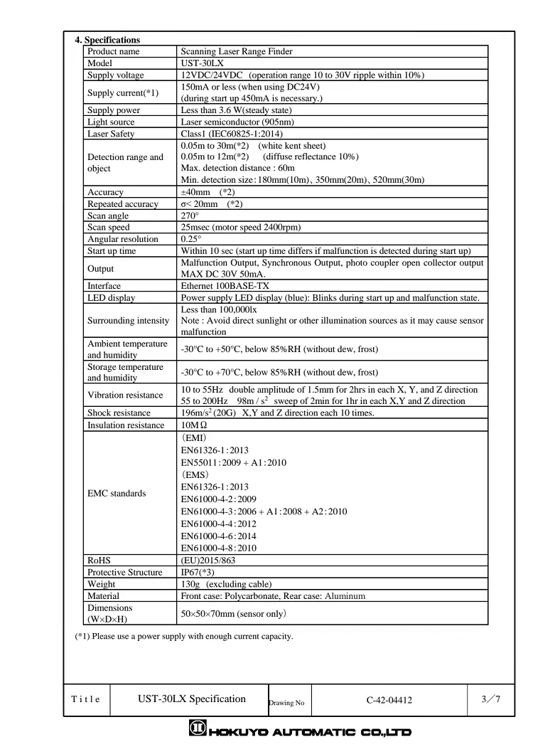 Model | UST-05LX |