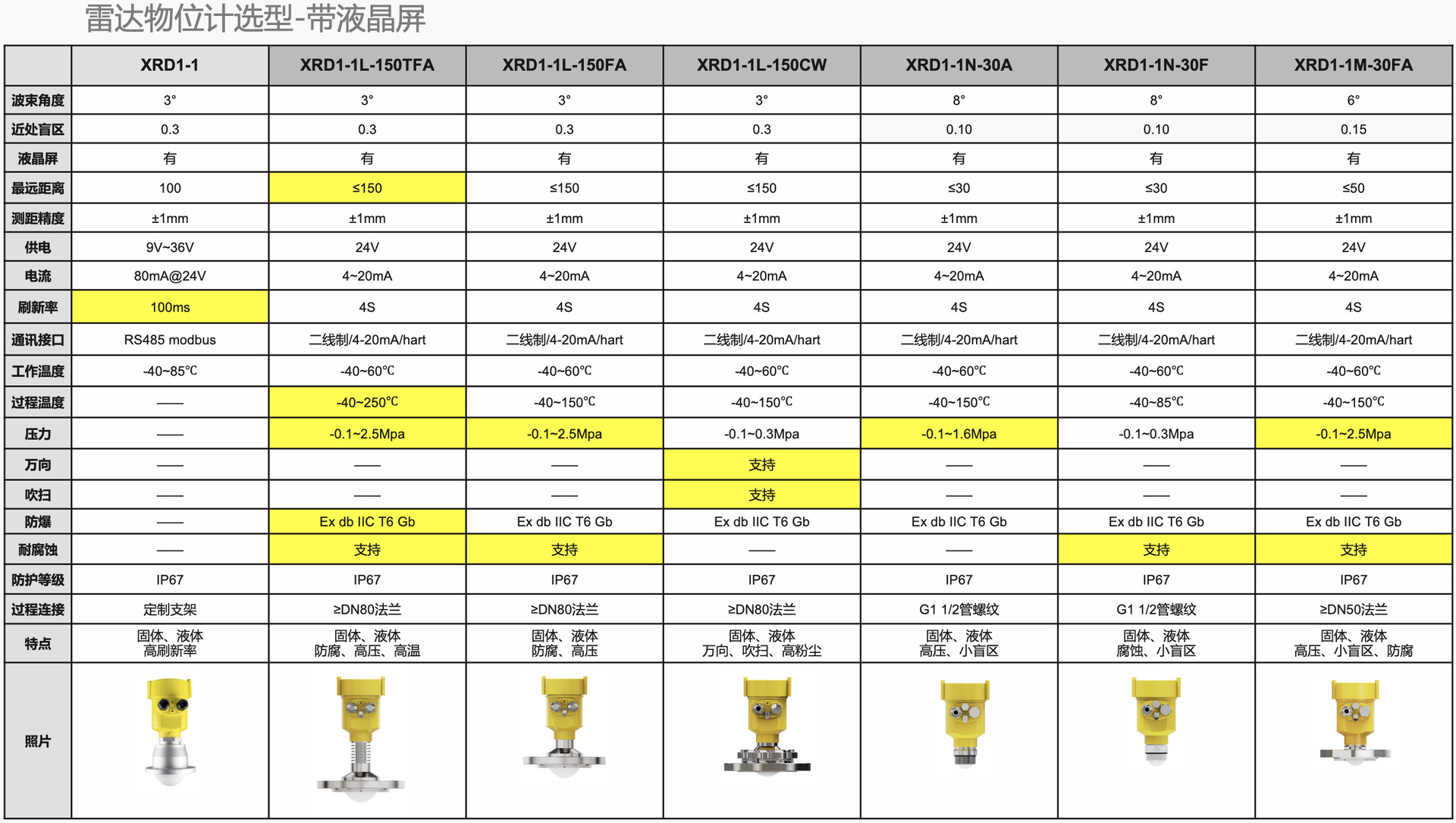 Replacing the imported Vega radar, the level gauge radar (XRD1-1L-150TFA) has low beam energy and can be installed in various metal, non-metal containers or pipelines to continuously measure the level of liquids, slurries, and particles in a non-contact manner. Suitable for occasions with large changes in dust, temperature, corrosion, pressure, and the presence of inert gases and vapors. The level meter radar is harmless to both the human body and the environment, and has the advantages of not being affected by the specific gravity of the medium, not being affected by changes in dielectric constant, and not requiring on-site calibration.